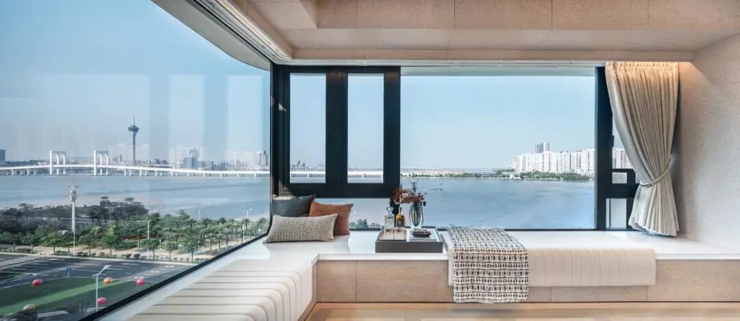 项目不仅坐拥澳门城市景观背景,更背倚小横琴山绵延绿意,享有静谧河湾资源,呈现出“进一步繁华,退一步静谧”的度假式生活体验。