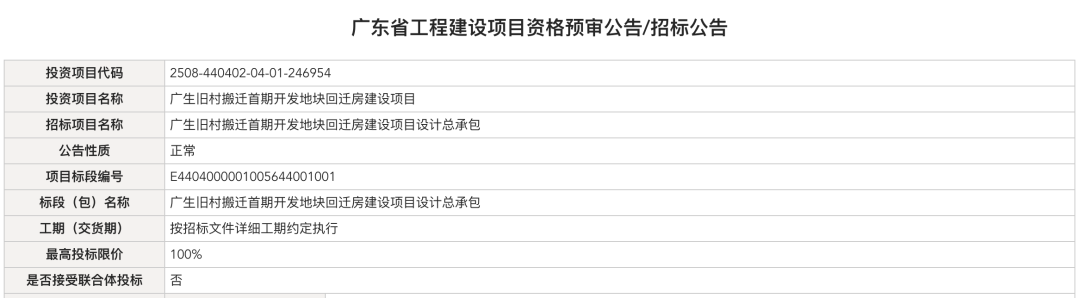 昨日(8月15日),珠海市公共资源交易中心发布了《广生旧村搬迁首期开发地块回迁房建设项目设计总承包招标公告》。