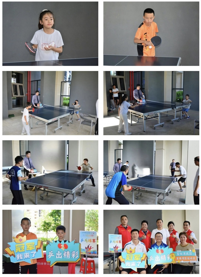 为了给业主提供更多文体娱乐空间,经部分业主提议,物业服务中心对2栋架空层乒乓球场地区域进行升级围蔽,配备专业球桌、风扇、照明设备供小区全体业主免费使用,并设置“湾区乒乓球俱乐部”。8月23日,玺悦湾北区“首届湾区业主运动会乒乓球赛”中,儿童组小将利落敢拼,成年组选手攻防娴熟,精准回球与精彩扣杀点燃现场。