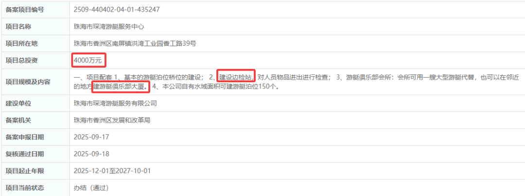 今日(9月18日),凤凰君留意到广东省投资项目在线审批监管平台发布了“珠海市琛湾游艇服务中心”备案公告!