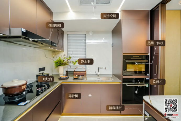 “中央空调 新风系统” 时刻守护呼吸健康,厨房八件套为烹饪时光注入便捷,主卫三重防护智能除湿系统驱散潮湿困扰……