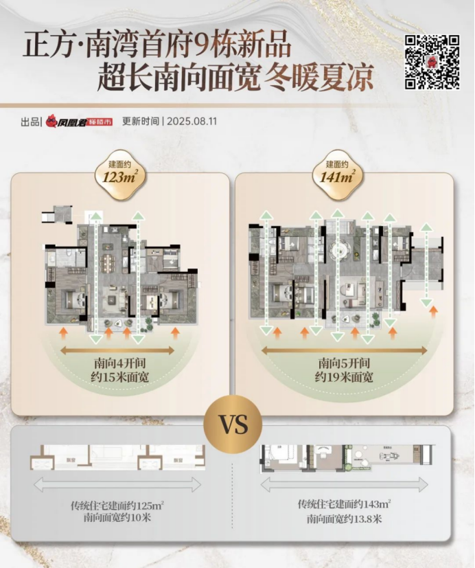 二期首推的9栋新品,建面约123-141㎡户型更将实用率提升至近110%,赋予居者通透舒适的居住体验。