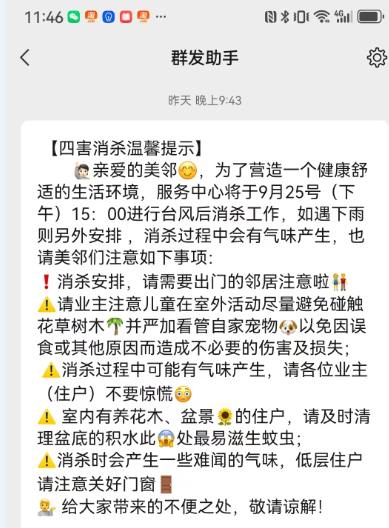 同时,物业团队迅速开展清理工作,并专门开展消杀活动,彻底清除台风带来的影响。