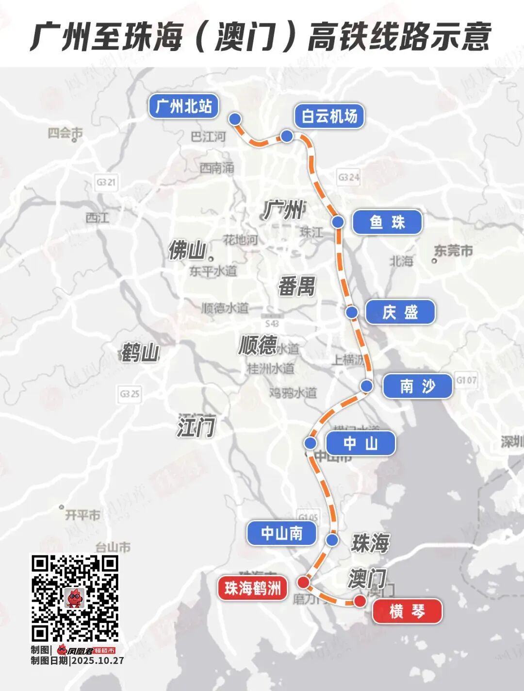 广州至珠海(澳门)高铁工程,由省铁投集团牵头开展项目可研工作,早被纳入广州市综合交通体系规划(2023—2035年),和2025年广东省重点项目。