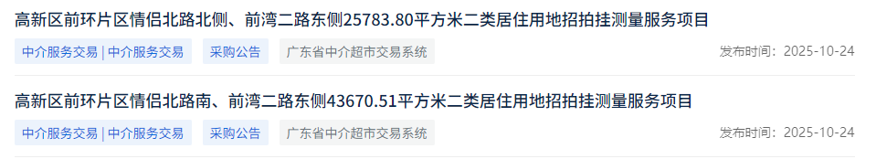 近日,凤凰君留意到广东省公共资源交易平台发布两宗二类居住用地招拍挂测量服务项目招标。