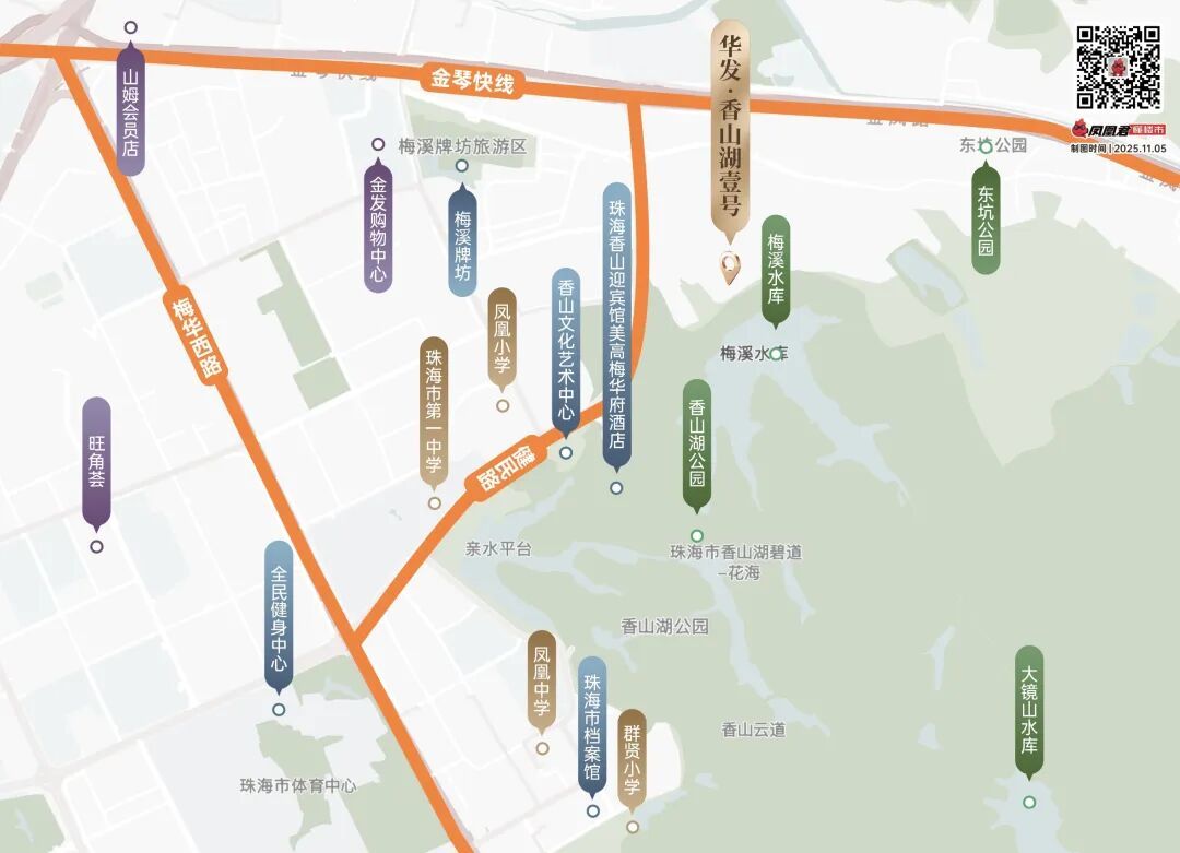 以华发·香山湖壹号为圆心展开生活地图,政、学、商、文、医等城市级配套星罗棋布,勾勒出便捷丰盛的生活图景。